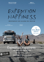 Mit seiner Fahrrad-Dokumentation „Pedal The World“ wurde er berühmt, nun geht Felix Starck erneut auf Reisen und hält seinen Trip als Dokumentation fest. Doch anstatt auf zwei Rädern mit Leichtmetallfelgen geht es in „Expedition Happiness“ dieses Mal in einem 13 Meter langen und 18 Tonnen schweren Schulbus auf Tour, den Starck und seine Freundin Selima Taibi eigens für die Reise zu einer Art Wohnmobil umgebaut haben. Nachdem sie gemeinsam mit Berner Sennenhund Rudi einmal quer durch Kanada gereist sind, wollen sie nun den amerikanischen Kontinent vom höchsten Norden bis zum südlichsten Zipfel hinunterfahren – von Alaska bis Argentinien soll die neue Reise mit dem umgebauten Schulbus gehen. Unterwegs führte Starck ein Videotagebuch über die erlebten Abenteuer, aus dem er dann diese Dokumentation zusammenschnitt. (filmstarts.de)