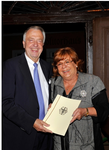 Die gleiche Ehrung auf Landesebene durfte sie bereits am Freitag, 21.09.12, in Ludwigsburg von Staatssekretär Jürgen Walter entgegennehmen.